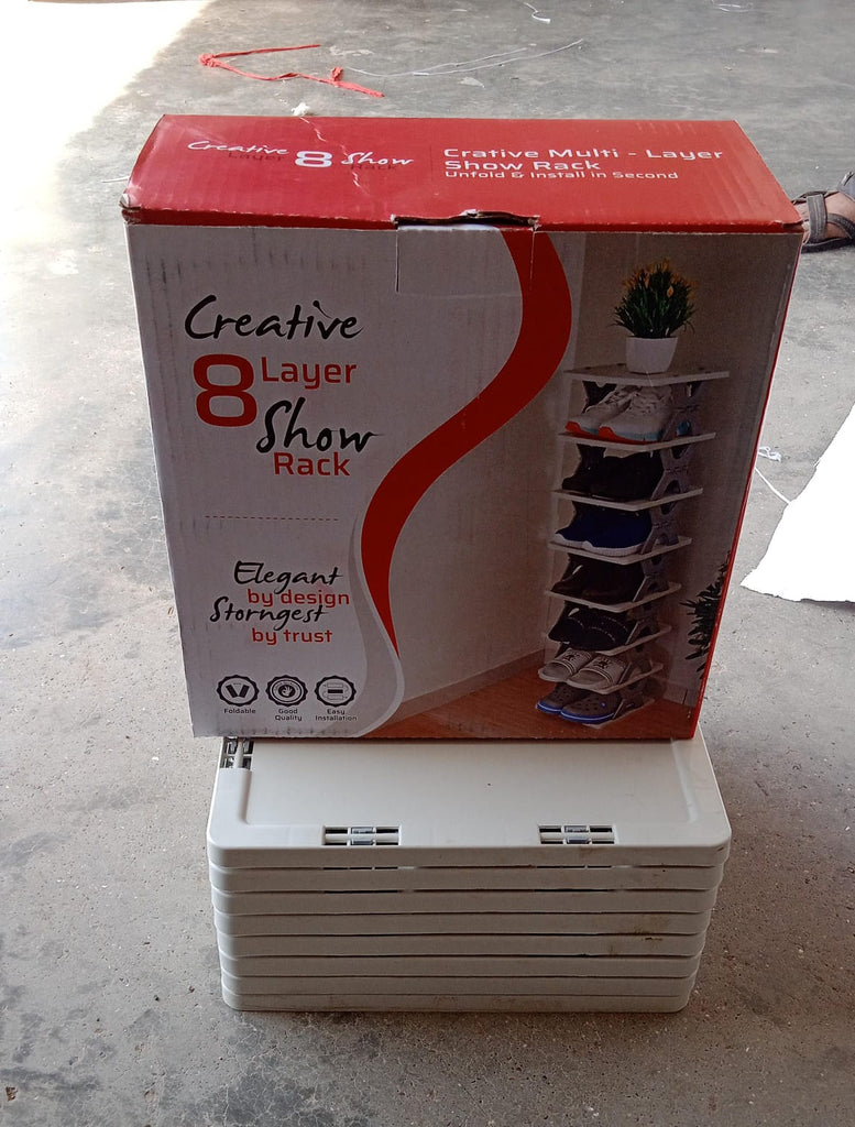 SMART SHOE RACK WITH 8 LAYER SHOES STAND MULTIFUNCTIONAL ENTRYWAY FOLDABLE & COLLAPSIBLE DOOR SHOE RACK FREE STANDING HEAVY DUTY PLASTIC SHOE SHELF STORAGE ORGANIZER NARROW FOOTWEAR HOME